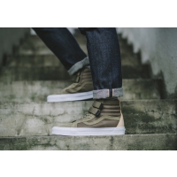 Vans recently dropped what they’re calling the Vans Military Function Pack. The pack includes tough and rugged iterations of the Sk8-Hi Reissue V, Old Skool V and Classic Slip-On. The altered models will come with features such as water repellent construction, nylon/suede paneling for warmth and a new lacing system that utilizes a “hook and loop” Velcro strap system to protect from wear and tear. Coming in your choice of Military Green, Black or Dark Blue, find the entire Vans Military Function Pack at select retailers today. Are you feeling this new military look and you favorite Vans silhouettes?